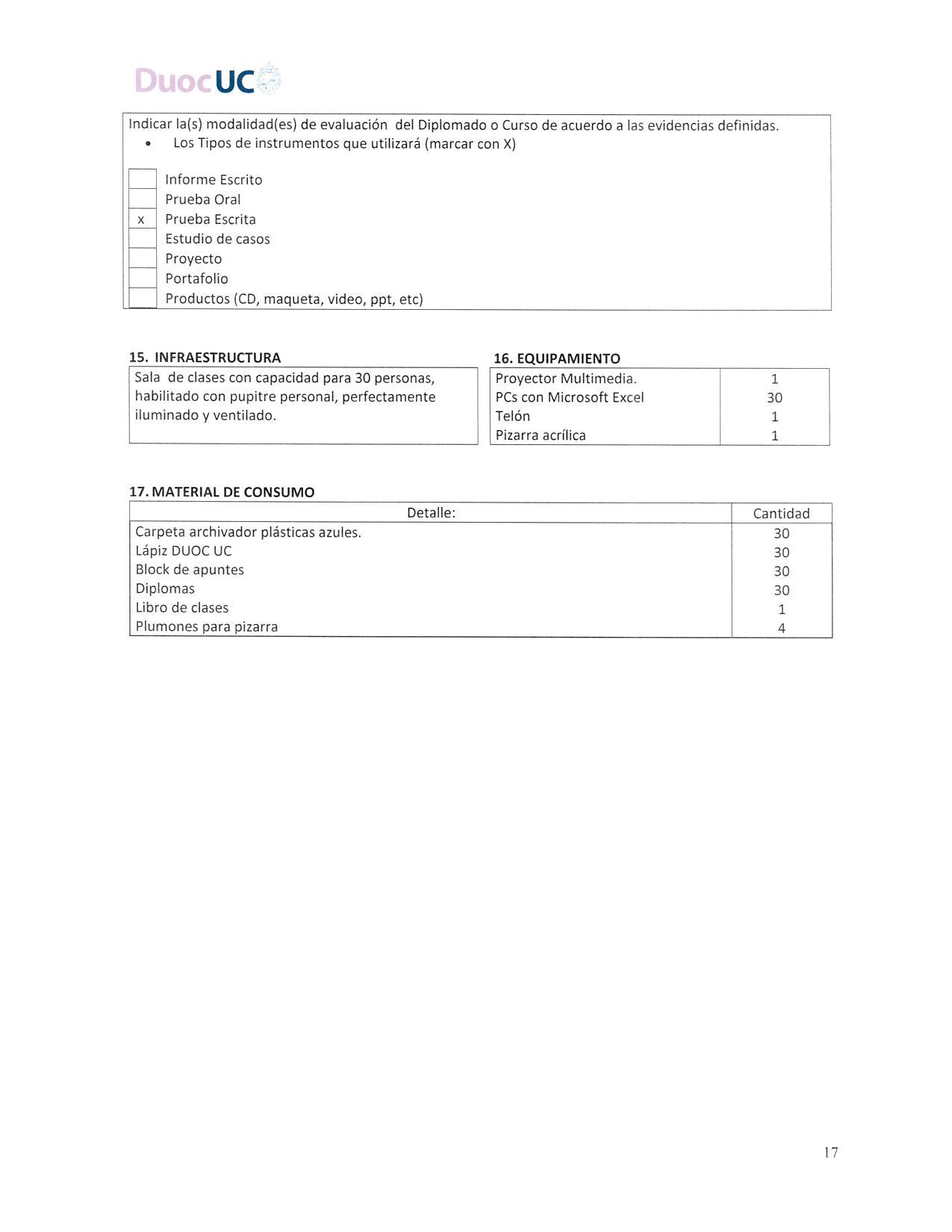12. El proyecto presentado por la Directora Escuela de Administración, Negocios y Turismo DuocUC.