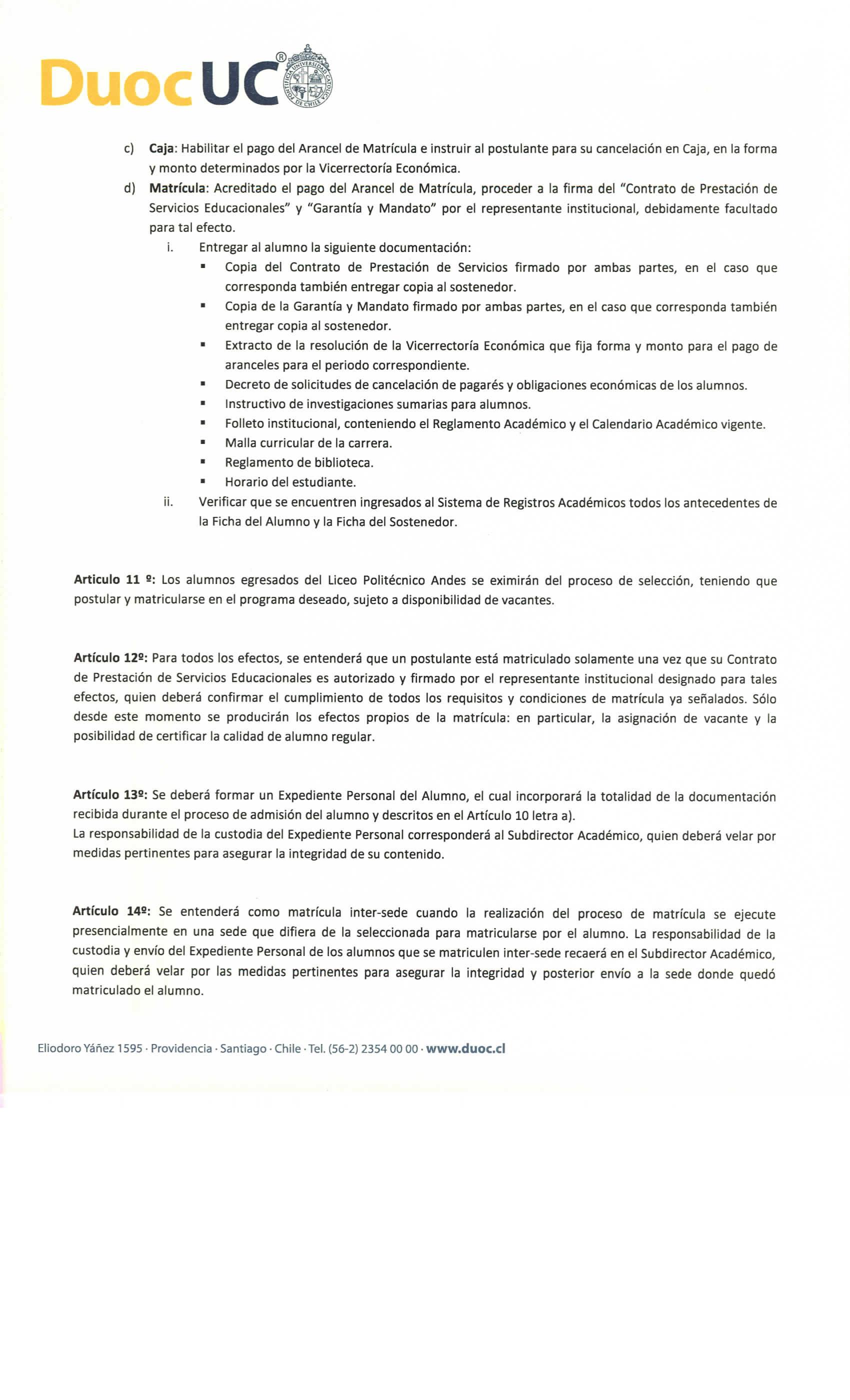 19 La necesidad de fijar criterios y condiciones uniformes para el Proceso de Admisión Ordinaria a las carreras impartidas porel Instituto Profesional Duoc UC;