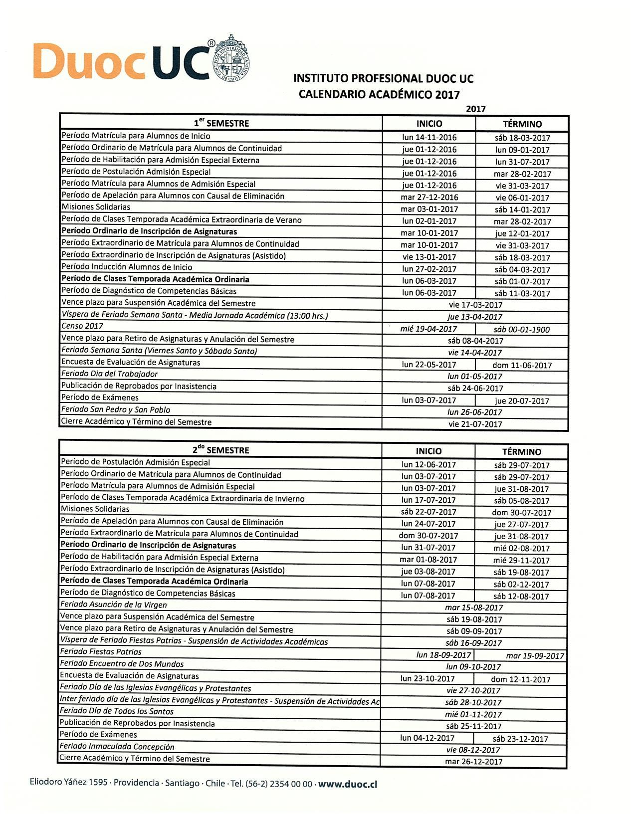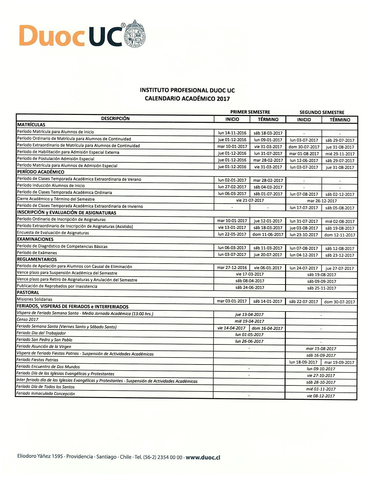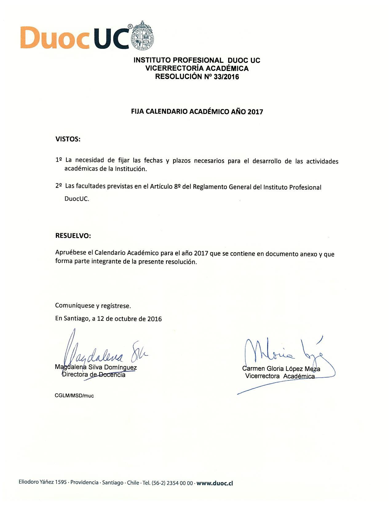 Resolución VRA N° 33 2016 Fija calendario académico 2017.