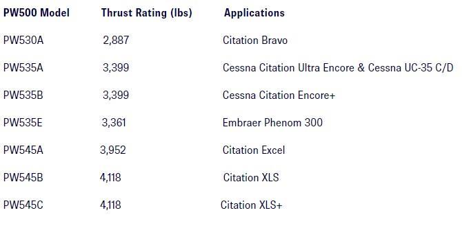 Aviões da classe do Praetor 500 utilizam motores com 7000 libras de empuxo.