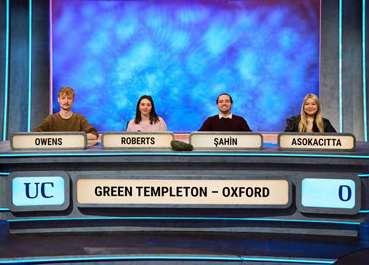 Green Templeton students took part in University Challenge for the first time in September, in what turned out to be a nail-biting episode. Fiona Asokacitta (DPhil Anthropology, 2024), Annie Roberts (Clinical Medicine, 2022), Yusuf Emre Sahin (MSc Comparative Social Policy, 2024) and Will Owens (DPhil Engineering Science, 2024) represented the college on the iconic quiz show. After a slow start, the team took the lead towards the end of the contest but were unfortunate to lose in the final few seconds when Darwin College, Cambridge correctly answered a ten-point starter question to overcome a five-point deficit.