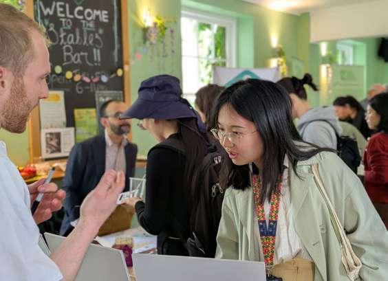 Head Chef Oliver Snowden talks to a guest at the Food Fair as part of the annual Human Welfare Conference in May. The presence of the Green Templeton catering team at the fair reaffirmed the college’s institutional commitment to sustainability and equitable health systems. The catering team showcased Trimchi, an elderflower-based kimchi, as an example of how the college creatively solves problems with food waste.