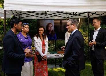 A BBQ and Jazz Evening was a new feature on the agenda for the Meeting Minds alumni weekend in September. Over 70 alumni joined in the late summer celebration as part of activities that welcomed over 300 alumni back to the college. The weekend was also an opportunity to put the college on the university-wide stage with Josephine Nana Afrakoma Agyeman-Duah (DPhil Women’s and Reproductive Health, 2018) interviewing Associate Fellow Dr Mehreen Datoo on the malaria vaccine rollout and her wider career as a Clinical Lecturer in Infectious Diseases.