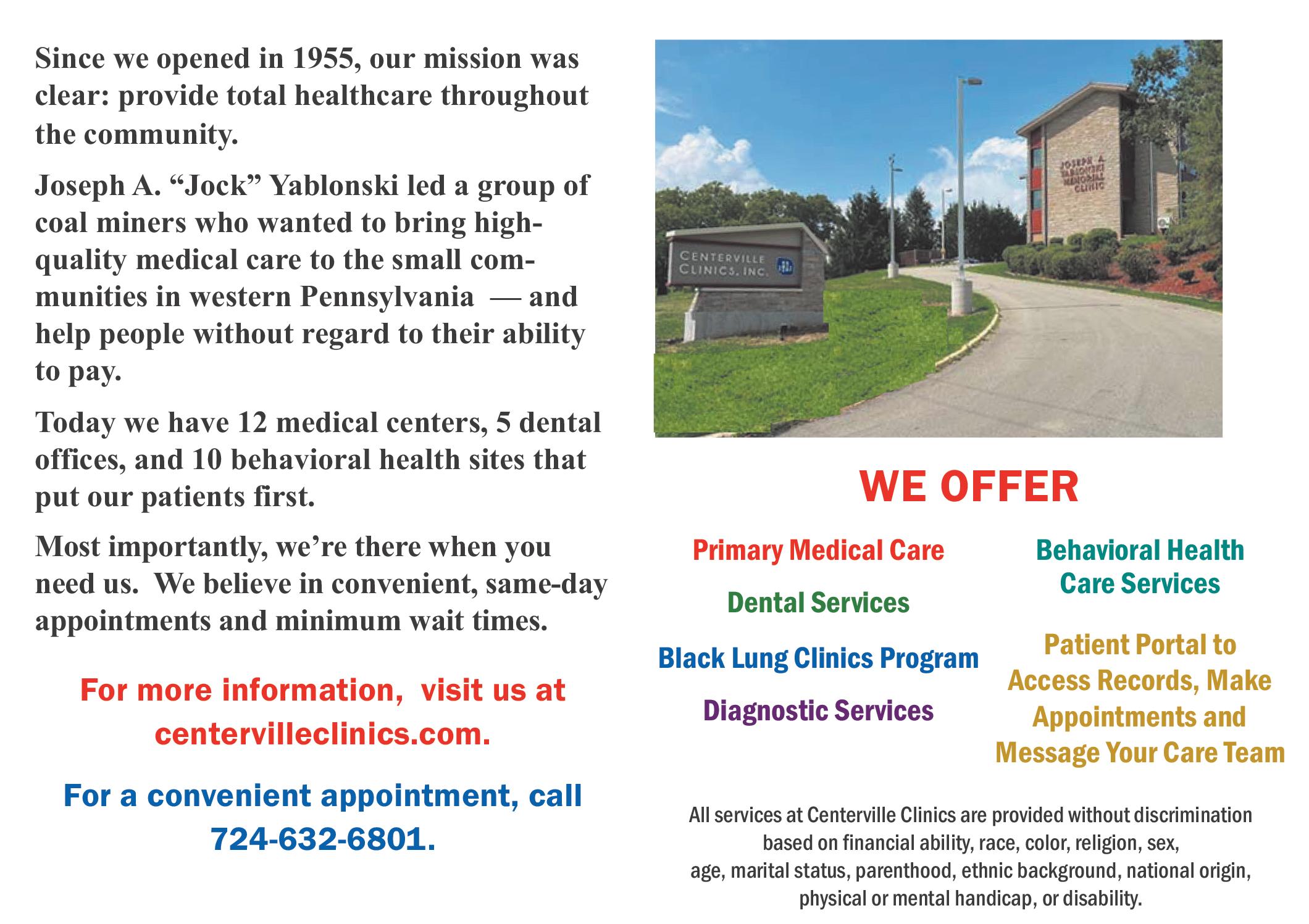 Centerville Clinics has 13 offices across Southwestern Pennsylvania and is the fifth largest health center in the state.