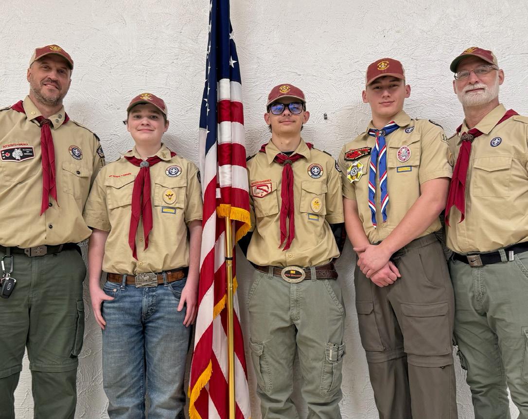 From left, Scout Master Bud Triplett, Cole Triplett, Zachary Stewart, Jackson Grimes and Assistant Scout Master Mark Stewart