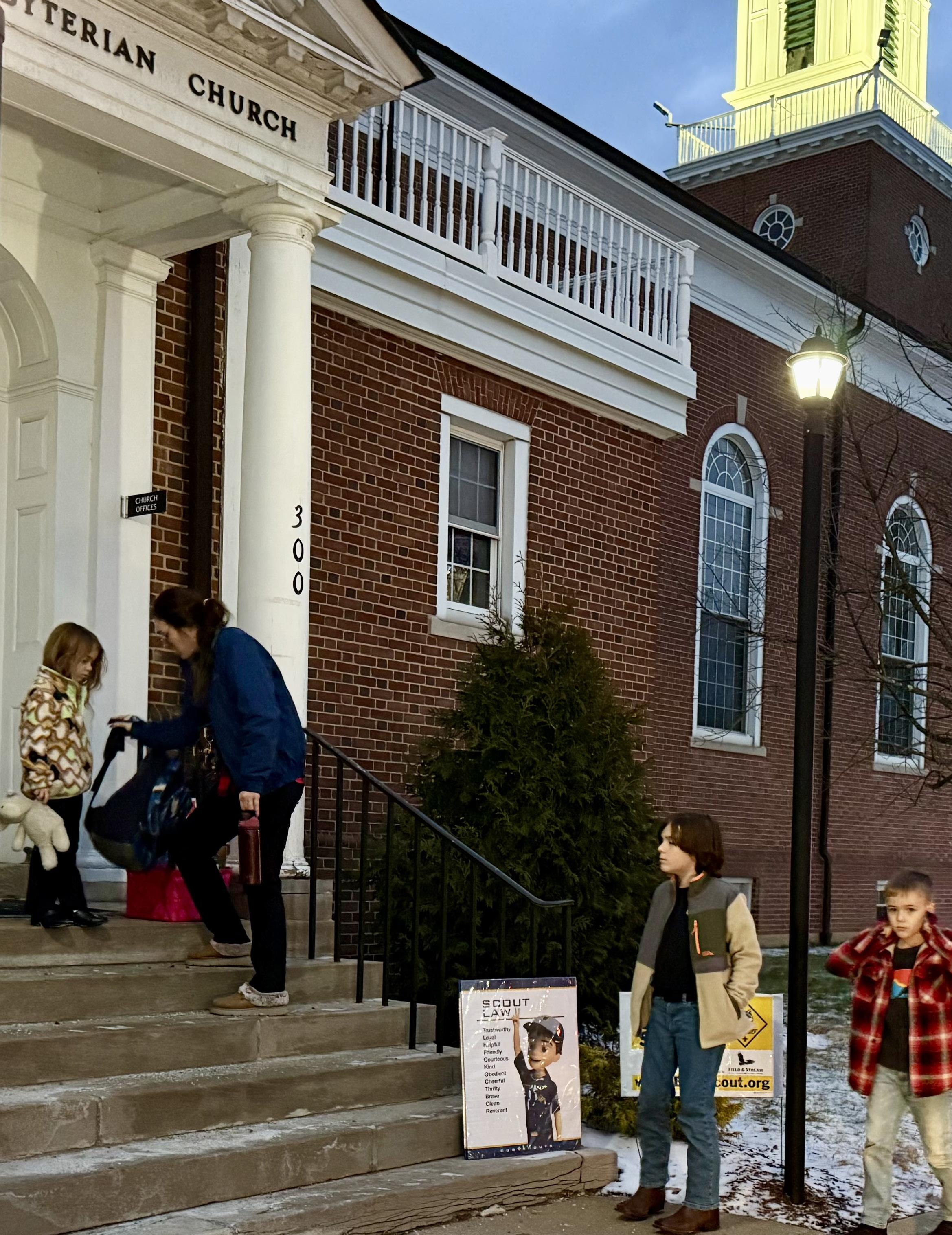 The Coffman family coming early to set up for the Friday Cub Scout meeting and Obstacle Course at First Presbyterian Church, Waynesburg.