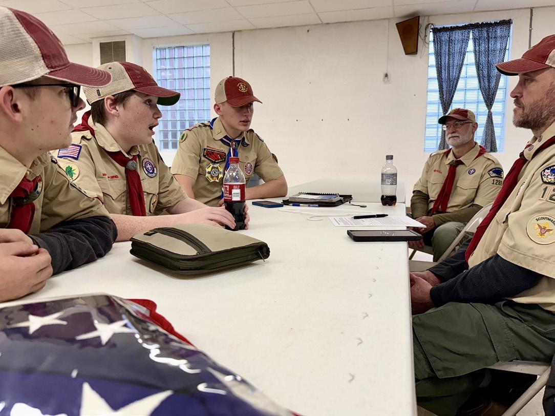 One of the big pluses of Scouting is its national and international network of packs, troops and camping adventures that build friendships for a lifetime. When I caught up with Troop 1280 at the VFW on Sunday at 4 p.m., two dads were there — Triplett and Assistant Scout Master Mark Stewart. Son Zachery, 16, started as a Cub Scout in Carmichaels and is now in Troop 1280. The meeting came to order with a flag salute and the Scout pledge, then got down to business. The Scouts were here to plan events for the next two months. Debating a winter campout or maybe snow tubing — what if it doesn’t snow? — was bringing back happy memories.