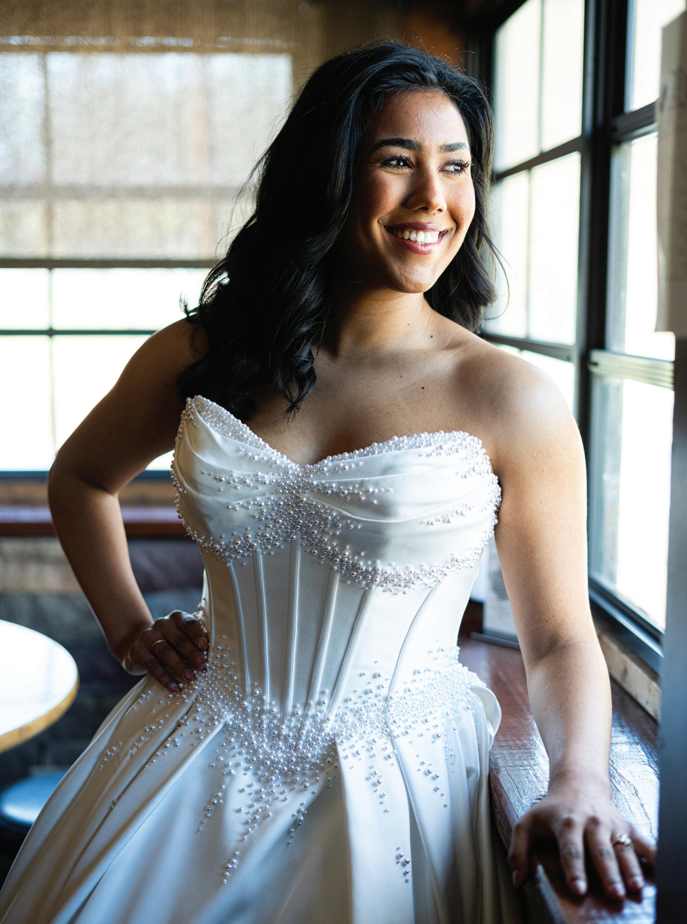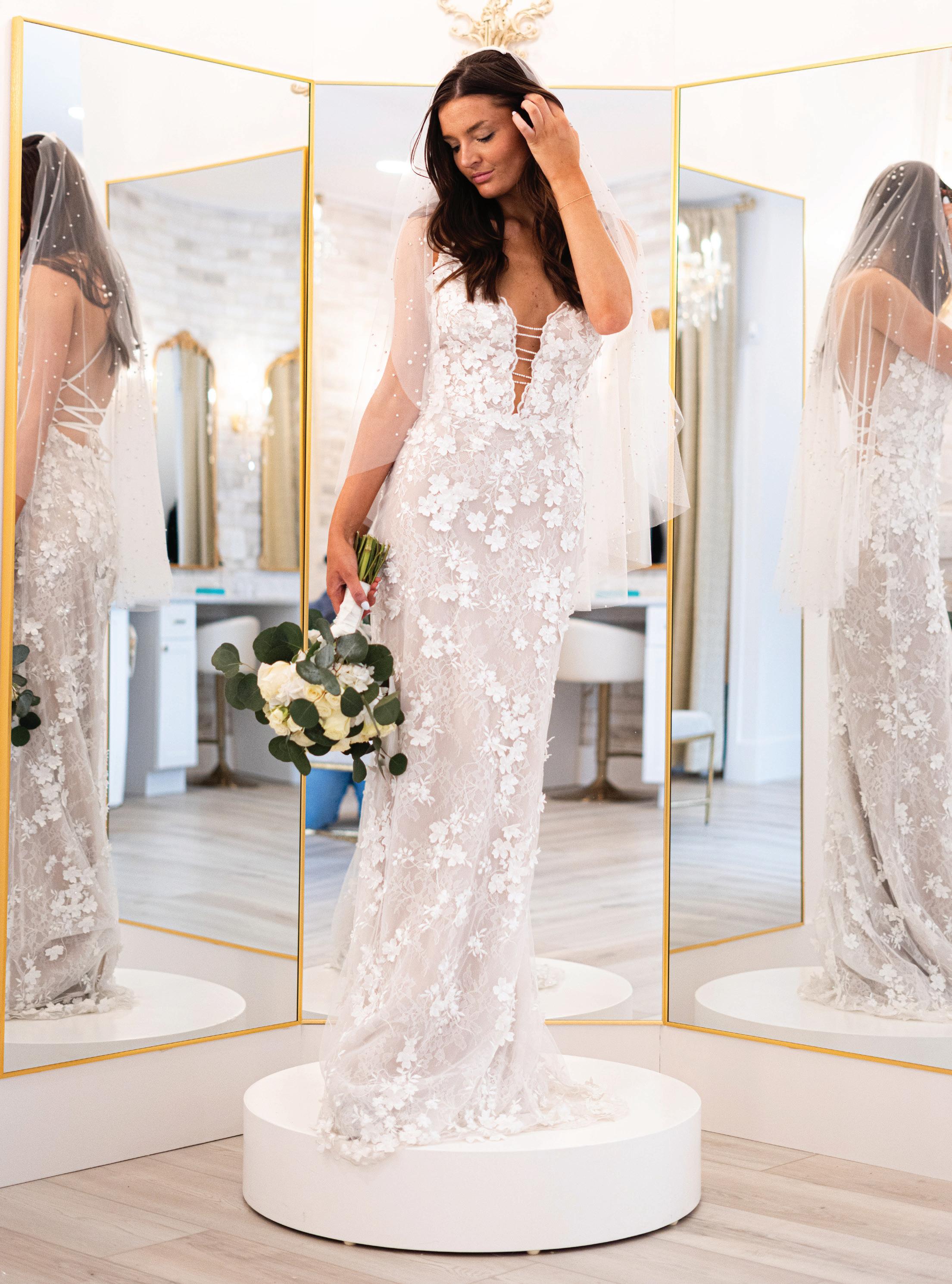 “There are so many different trends right now — from very soft, subtle and elegant to lots of sequins, beads and lace,” she said. “But the most important thing is how the bride feels in her choice. Does she want romance or sexy? What is her venue? When is the wedding? These are all important questions we ask to help find the perfect gown for each bride.”