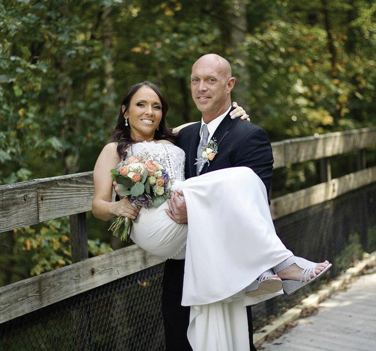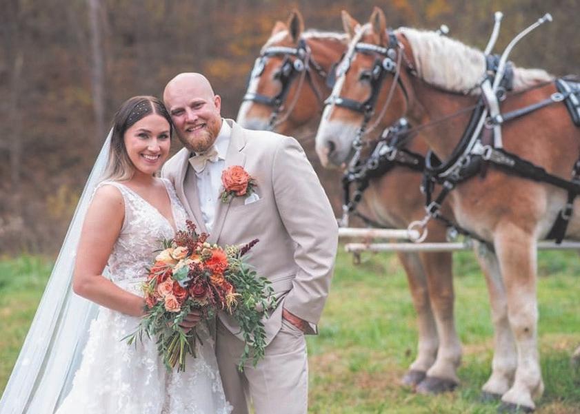 Michelle and Russell Gibbs’ love story started in the most unlikely place, long before they ever began a romance. Both were serving in the Army Reserve in the early 2000s and wound up stationed in Iraq. “I was in a military police unit back in Cumberland, Maryland,” says Russell. “Michelle, with her living in Virginia, she was in a detachment unit out of Fort Meade, Maryland, so we didn’t really get to meet until Iraq.” They became friends, but that was more than 20 years ago, back in 2004. After their tour in Iraq ended, the two went on to build separate lives back here at home. For Michelle, that meant marriage and two children. The marriage didn’t work out, and years later, Michelle and Russell reconnected via social media. “We just started talking, and then one thing led to another,” Russell recalls. “I was playing sports and was playing in an area where she lived, and said, ‘Hey, let’s go out for something to eat.’ It just went from there.” That was in 2021, and the two got married this past Sept. 13. Michelle is originally from Alexandria in Northern Virginia and now works as a lab tech in Keyser, West Virginia. Russell is a native of Lemont Furnace in Fayette County, where the couple now lives, and is a service forester for the Pennsylvania Department of Conservation and Natural Resources in the Bureau of Forestry covering Washington, Greene and Fayette counties. The newly married couple has been chosen as the winners of this year’s Wedding Photo Contest for Wedding Planner Magazine.