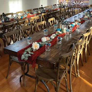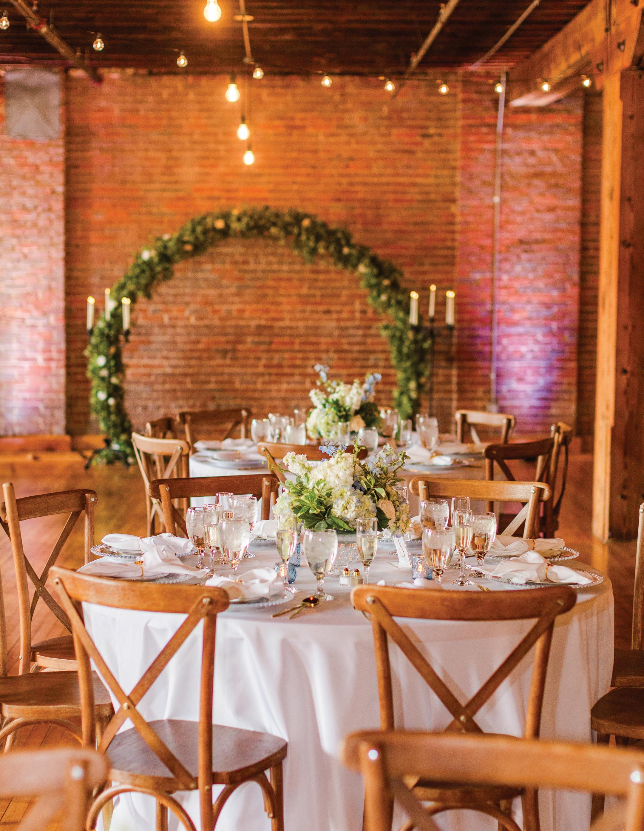 At the center of White Oak 1838 is an Amish-crafted barn originally built in 1838 in Navarre, Ohio. Owners Cindy Walsh and Dave Rosiello carefully relocated and restored the timber-framed structure, giving new life to the handhewn white oak beams while preserving the barn’s original character. The restored frame now sits within a modern, 10,000-square-foot, climatecontrolled building designed to host up to 250 guests yearround.