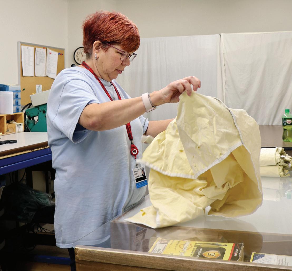 If you have been a patient at Penn Highlands Mon Valley Hospital or visited someone there, chances are you’ve come in contact with Tina Curl’s handiwork. For nearly four years, Tina has been a valued member of the hospital’s laundry department, folding items as they come out of the dryers.