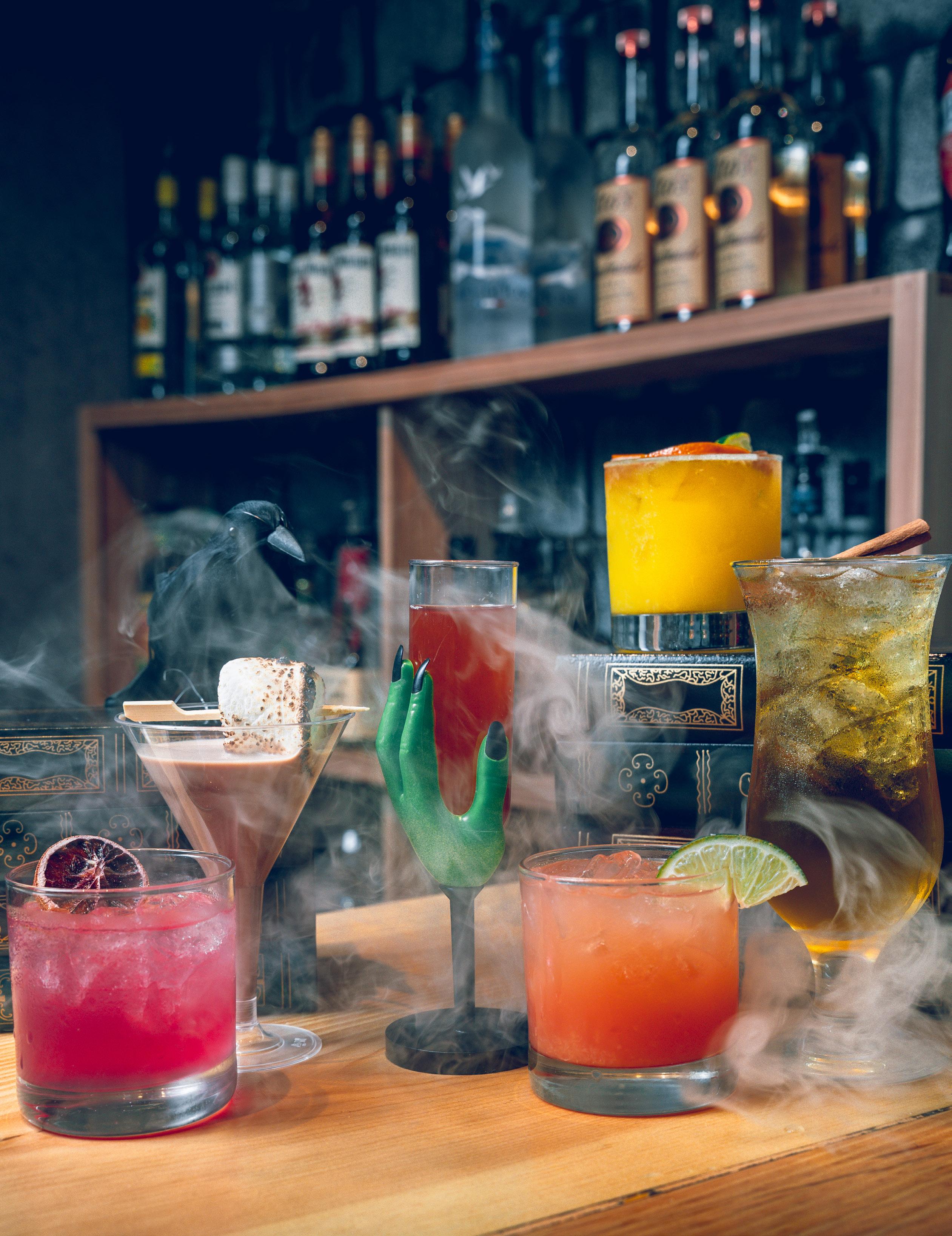 Along with the bewitching cocktails, the appetizer menu at The Tipsy Cauldron features creepy food options, including hexed wings, sorcerer’s egg rolls and cauldron queso.
