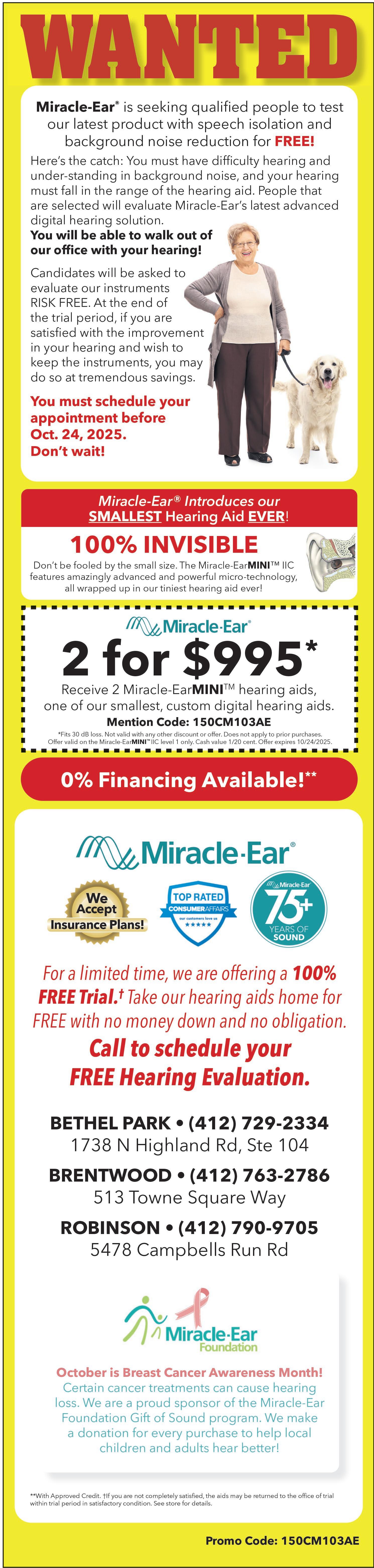 Call 412-561-2431, ext. 3, for more details.