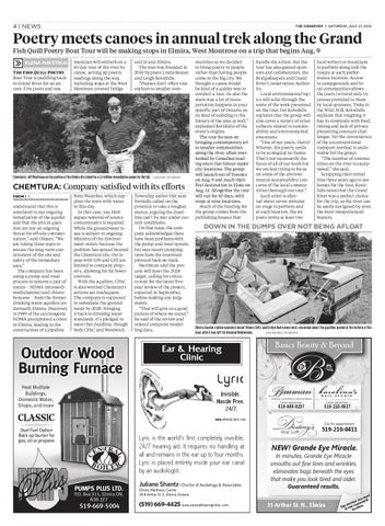 Poetry meets canoes in annual trek along the Grand Fish Quill Poetry Boat Tour will be making stops in Elmira, West Montrose on a trip that begins Aug. 9 elena maystruk The Fish Quill Poetry Boat Tour is paddling back to Grand River for an encore. Five poets and one
