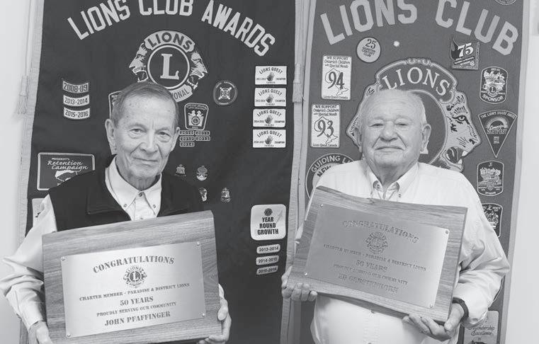 THE PARADISE AND DISTRICT LION Club celebrated its 50th anniversary on Tuesday, with the two remaining founding members, Ed Gerstenkorn and John Pfaffinger, reflecting on the club’s early days.