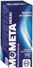 Anwendungsgebiete: MometaHexal Heuschnupfenspray wird bei Erwachsenen zur Behandlung der Beschwerden eines Heuschnupfens (saisonale allergische Rhinitis) angewendet, sofern die Erstdiagnose des Heuschnupfens durch einen Arzt erfolgt ist. Enthält Benzalkoniumchlorid. Wirkstoff: Mometasonfuroat (als Mometason-17-(2-furoat) 1 H2O).