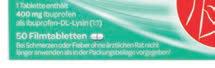 Anwend.-geb.: Leichte bis mäßig starke Schmerzen wie Kopf-, Zahn-, Regelschmerzen, Fieber. Warnhinw.: Bei Schmerzen o. Fieber o. ärztl. Rat nicht länger anw. als in der Packungsbeilage vorgegeben! Wirkstoff: Ibuprofen.**