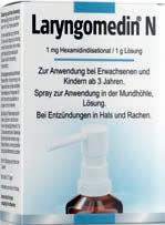 Anwendungsgebiete: Wird angewendet zur unterstützenden Behandlung von bakteriellen Entzündungen der Schleimhaut von Mund und Rachen. Warnhinweise: Enthält 1,0 Vol.-% Alkohol, Pfeff erminzöl und Sucrose (Zucker). Packungsbeilage beachten! Wirkstoff: Hexamidindiisetionat.
