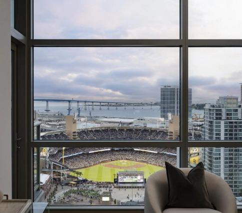 Once in a lifetime opportunity to own THE BEST unit at The Legend with stunning, panoramic Downtown, Bay & Ocean views plus UNOBSTRUCTED VIEWS DIRECTLY INTO PETCO PARK! Take in a ball game, concert or special event from your own balcony suite! The versatile open floor plan and floor-to-ceiling windows allow you to soak in the sunset views from every room and offers multiple options for living spaces to meet your needs! Split bedroom layout includes a private primary suite with views, custom walk-in closet, and spacious bathroom. Plenty of closet space, inunit laundry, 2 parking spaces + TWO separate storage spaces. The Legend offers a unique East Village setting with a mix of privacy, luxury & convenience with easy access to the Gaslamp & Marina District Amenities include a fitness center, pool, spa, sauna, steam room, 24-hour attendant, concierge & the fabulous 7th-floor rooftop deck to take in the games & concerts!