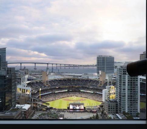 Welcome to luxury living in downtown San Diego! This exquisite unit offers an urban lifestyle of unparalleled class and sophistication, with breathtaking views of PETCO Park, the downtown skyline, and the iconic Coronado Bridge Step inside to a meticulously designed interior with upgraded features throughout The spacious living area is highlighted by floor-to-ceiling windows that flood the space with natural light and showcase stunning panoramic vistas. Entertain guests with cityscapes and events as your backdrop in the open-concept kitchen, featuring top-ofthe-line stainless steel appliances, luxury quartz countertops, and custom cabinetry. Relax in the comfort of your primary suite or on the balcony, enjoying your daily rituals while soaking in the vibrant sunrises and sunsets. The walk-in closet provides ample storage, and the en-suite bathroom offers a spa-like ambiance with dual vanities, a soaking tub, and a separate glass-enclosed shower. The additional bedroom includes balcony access, a walk-in closet, and a stylish adjacent guest bathroom. This condo offers ample space