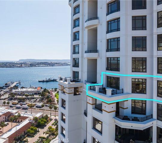 Sweeping harbor views in this corner unit capture the ocean, marina and urban essence of San Diego Modern artistic vintage lighting graces the ceiling in dynamic colors for a rich contrast with an upgraded audio/visual sound system 2 Balconies with 226 sq feet surround the unit for extended entertaining and enjoyment The kitchen has double ovens, encased cabinets of polished rich wood, a harmonious back splash over the gas stove and a stand alone counter that is a center focus. In one of the 2 primary suites, there is a custom luxury walk in closet with a bathroom shower enclosed in curved glass blocks that set off the brown stone tiles and pebbled floor for a stunning effect. In addition a den . An abundance of light showcases this home, with tastefully and innovative built-ins that are positioned for practical use along with customized automatic blinds. Thoughtfully designed for flow, entertaining and aesthetic living, this residence also boasts a media room, 2 parking spaces and vibrant sunsets. This is a golden opportunity to live out your dreams as the amenities at the