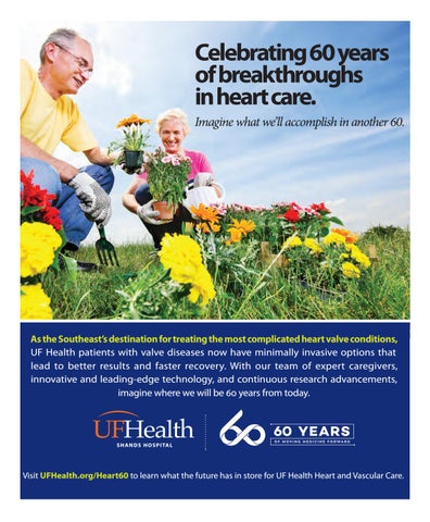 UFHealth.org/Heart60to tolearn learnwhat whatthe thefuture futurehas hasininstore store Health Heart and Vascular Care. Visit UFHealth.org/Heart60 forfor UFUF Health Heart and Vascular Care.