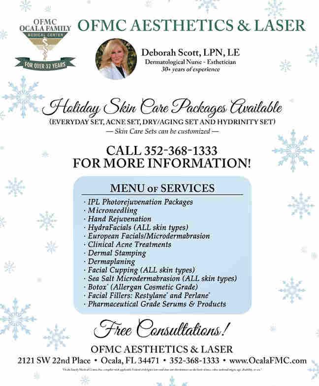 Onapersonalnote,Iwanttoacknowledgethepeople I’m most grateful for: my children, my family, and my friends.I’m also thankful for the advertisers,contributors, and supporters who help bring Ocala Magazine together each month, as well as the community here in Marion County and the City of Ocala that continues to embrace us. It has been one heck of a year, and as we close out this final issue, I’m reminded of how much your support means. e next time I bring you this letter,we’ll be stepping into a new year.