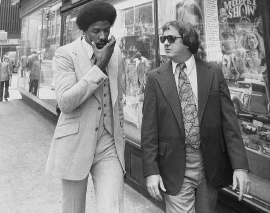 A 20-year-old Buddy Martin as Sports Editor of the Ocala Star-Banner Buddy walking down 5th Ave. in New York with basketball legend Julius Erving in 1971