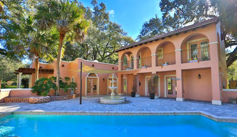 Enjoy private country living, yet conveniently located close to everything! Nestled on 14+/- acres with majestic Graddaddy Oaks. The chef’s kitchen is open to a large family room with a fireplace, soaring ceilings, built-in cabinetry, a wet bar, and sliding glass doors that lead to a pool area. The first-floor owner suite features a fireplace, spacious sitting area, two walk-in closets, a bathroom with separate vanities, and a large dual shower and jetted tub. The second floor includes three bedrooms and two baths. The home includes a large screen-enclosed pool, a covered lanai, and a summer kitchen. Equestrians will enjoy the 4-stall center aisle concrete block barn with a tack room, wash rack, half bath, overhead storage, or bonus room. Plus there is an arena and dressage ring. Stocked pond & direct access to the Florida Greenway and Trails, Located remarkably close to The Florida Horse Park.