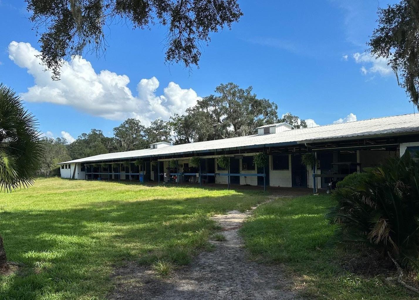 24-stall CB barn with a 1/1 apartment, office, feed room, and plenty of flat land. NW Ocala 10 minutes to WEC and HITS.