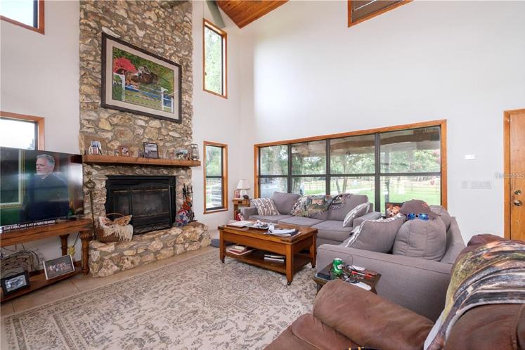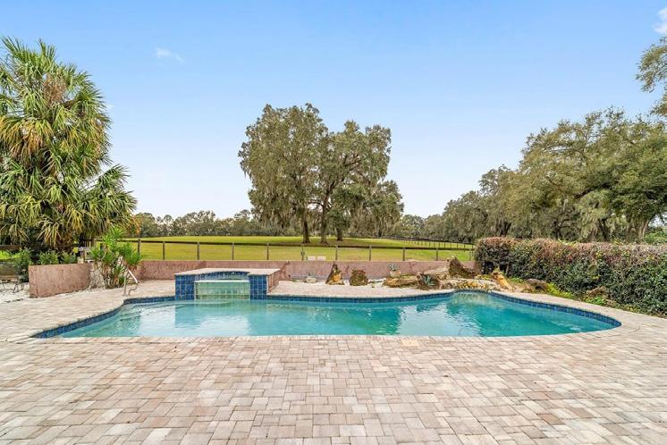 Perfect Jumper/Hunter paradise on a beautiful Oak studded 18.86 acre farm in NW Marion county, close to town and in the heart of horse country. This pool home, situated in a very private setting, is perfect for entertaining with an open floor plan and a lot of new updates, beautiful Tongue and Groove ceilings, large windows and an impressive cedar siding floorto-ceiling stone fireplace. Enjoy the outdoors with a screened back porch that opens to the inground pool that is accented with pavers.
