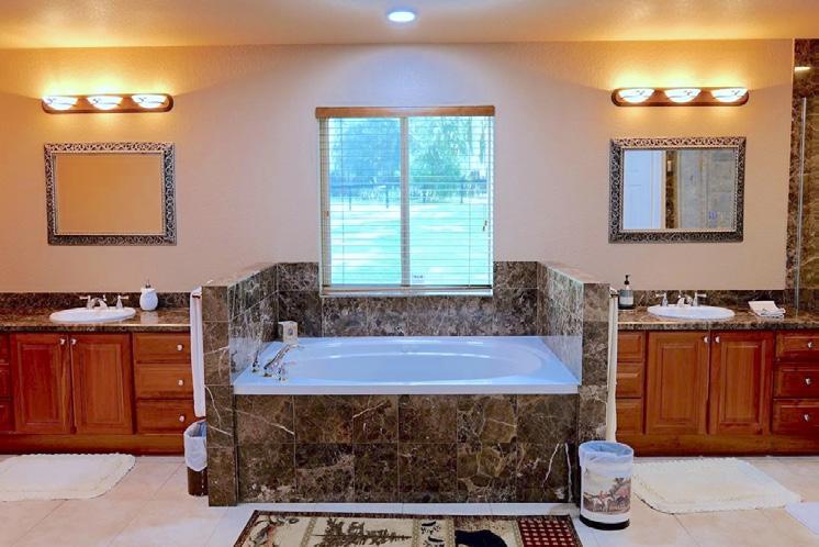 Dream home boasts an open split floor plan featuring a welcoming living room, framed by a wood-burning fireplace, 3 bedrooms, 3 bathrooms, plus an inviting office/retreat. The kitchen is a chef’s haven adorned with marble countertops, custom cabinetry, stainless steel appliances, a center island, and an expansive pantry.