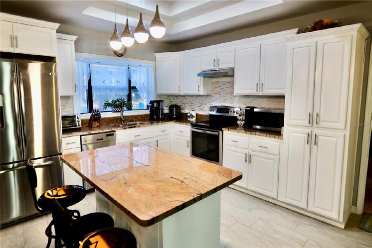Upon entry through the Brazilian Walnut front door, this 5/3 home with office offers custom touches throughout. The entire home has polished concrete floors, open kitchen, and a triple split plan. The upgraded kitchen features granite countertops and hickory cabinets with ample storage and a large pantry.