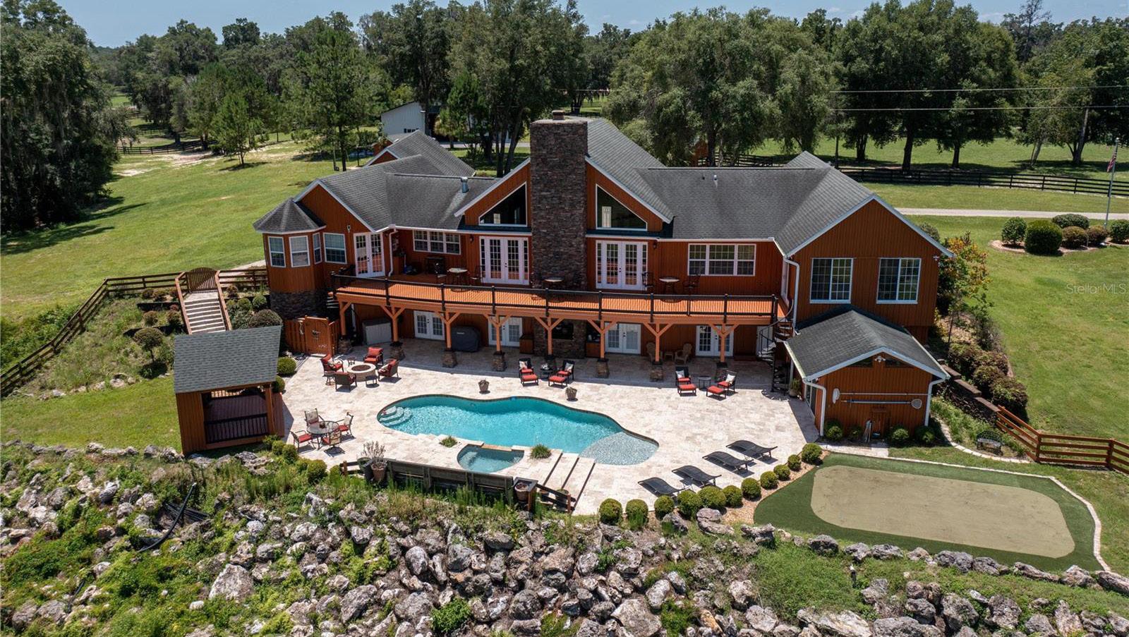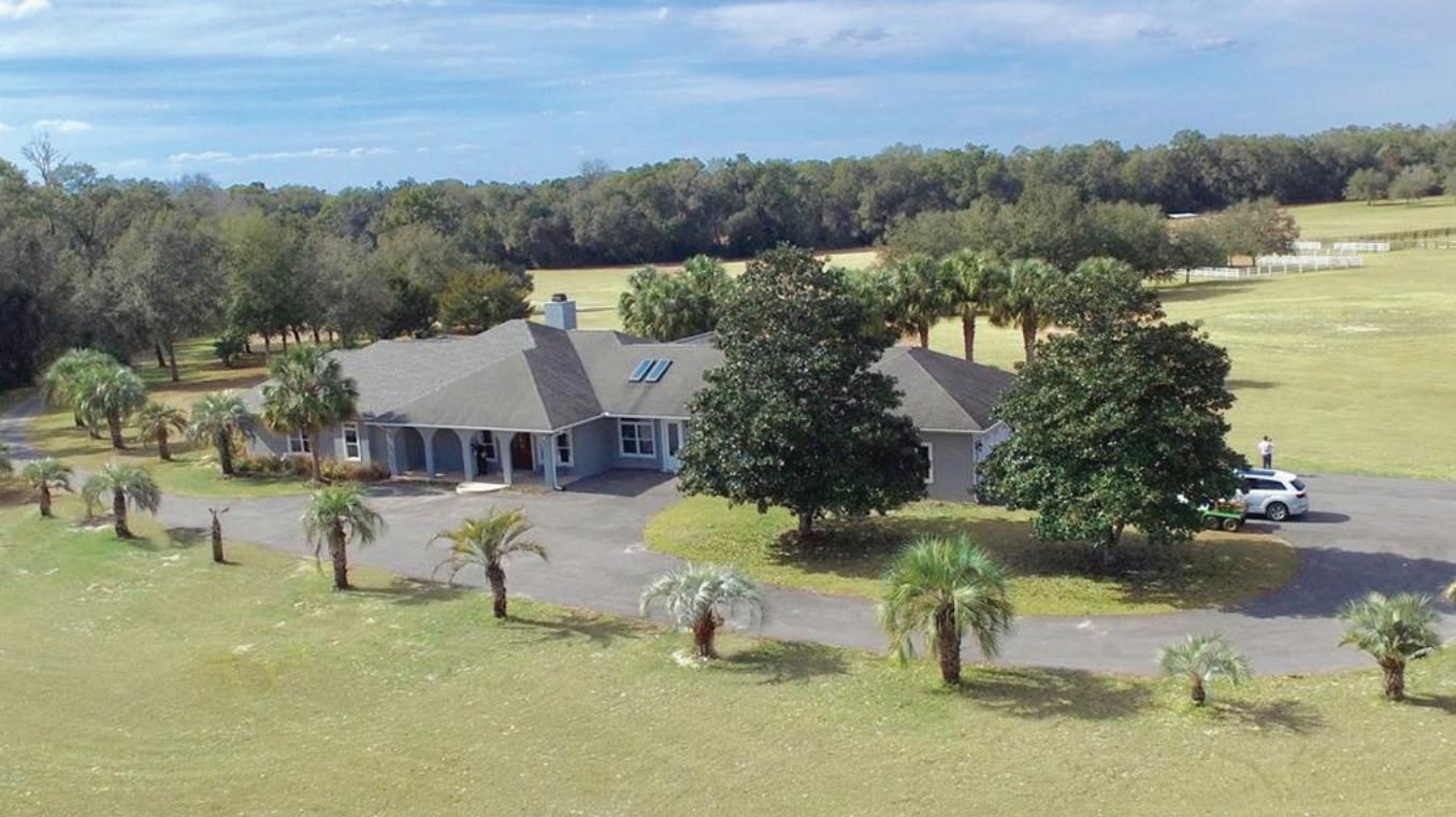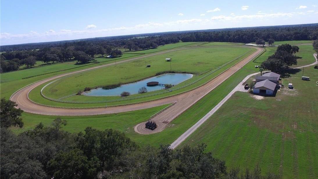 PROPERTY!!! This property is a little slice of heaven. The views from the main house are absolutely spectacular, overlooking the spring fed aquifer pond and the rolling hills are just some of the beautiful views to enjoy on this property. This Ranch is its own private oasis.A rare opportunity to own a secluded private horse ranch that sits on 110 acres with electric gates at both entrances, with over 1 mile of brand-new blacktop roads with multiple parking lots. This ranch has over 10 miles of four board fencing, a 150’ x 300‘ riding arena, a 60’ round pen, three wash racks, office in barn, full bath in barn,10 turn outs five huge pastures, a very large spring fed pond, 9 zone irrigation system around house with over 100 heads, are just some of the beautiful things on this 150 year old phosphate mine property. The custom built home was constructed with all of the wood that came off of the land. It has a beautifully scaled great room with sweeping stone fireplace, french doors, game room, 2 built in bars, cherry floors, pine walls, custom wood cabinetry & built ins, granite throughout, sun room, exercise room, mud room, bonus room, cathedral beamed ceilings are just a few of the upgrades. The ranch also has another brand new three bedroom two full bath 2348 square-foot home built on the property, 35 stall MD barn with two 2/1 apartments, 2 tack rooms in barn, 2 grooming stalls, 2 feed rooms, 12 individual custom tack lockers, 36’X80’ workshop/hay building, 60’X100’ Morton building, 72’X108’ breeding building with lab and 8 stalls, but can be converted to 16 stalls if needed, 4 full R/V hook-ups located by barn, just some of the things that complete this farm. Also Just 23 miles to WEC, 23 miles to Florida Horse Park, 30 miles to HITS, 8 miles to Rainbow River and right next-door to the Two Mile Prairie Preserve. This property also has its own HOA that is not in effect at this time, but can be easily changed back. All the ingredients for the perfect horse ranch!
