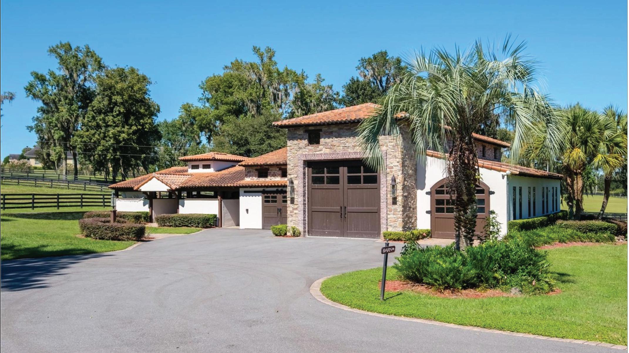Minutes to WEC in the most desirable area of NW Ocala on Hwy 225A. This 11+ acre Tuscan inspired estate is one of the most beautiful farms in the county. From its stunning gated entrance, lighted tree lined driveway, impeccable landscaping, rolling hills, pond, and more will leave you in awe. From the moment you enter the drive you’ll be greeted by stunning Live Oaks surrounding the 2 bedroom 2 bathroom cottage with an ivy walled courtyard. Cottage is very upscale with plenty of living space, gourmet kitchen, laundry room, and beautiful bathrooms. The multi terraced courtyard features pavers throughout, amazing landscaping & lighting, perfect for relaxing under the oaks or entertaining your friends. At the end of the tree lined drive you’ll come to a hilltop paradise. There is a beautiful pond with fire pit at the base of a spa like pool setting equipped with a pool house perfect for entertaining with amazing hilltop views. On the other side of the pond is a lavish Carriage house. Attached is a stunning 4 stall barn with brick pavers, custom euro stall fronts, and tongue & groove ceiling. The large carriage doors open to a fully finished space that could be perfect for living space, game room, an art studio, or a garage that would leave your friends speechless. There are 3 bedrooms and 3.5 bathrooms, plus an office, and living spaces. This farm is a must see.