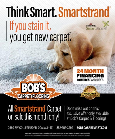 2660 SW COLLEGE ROAD, OCALA 34471 | 352-355-3999 | BOBSCARPETMART.COM *IF AFTER CARPET IS PROFESSIONALLY CLEANED BY CONSUMER AND STAIN CANNOT BE REMOVED, YOU GET NEW CARPET †24 MONTHS WITH PAYMENTS AT 0% ON PURCHASES OVER $300 WITH APPROVED CREDIT. MINIMUM DEPOSIT REQUIRED ON ALL ORDERS. CANNOT BE COMBINED WITH ANY OTHER OFFER. SALE ENDS MARCH 31ST, 2018. LICENSE #CBC1260880.