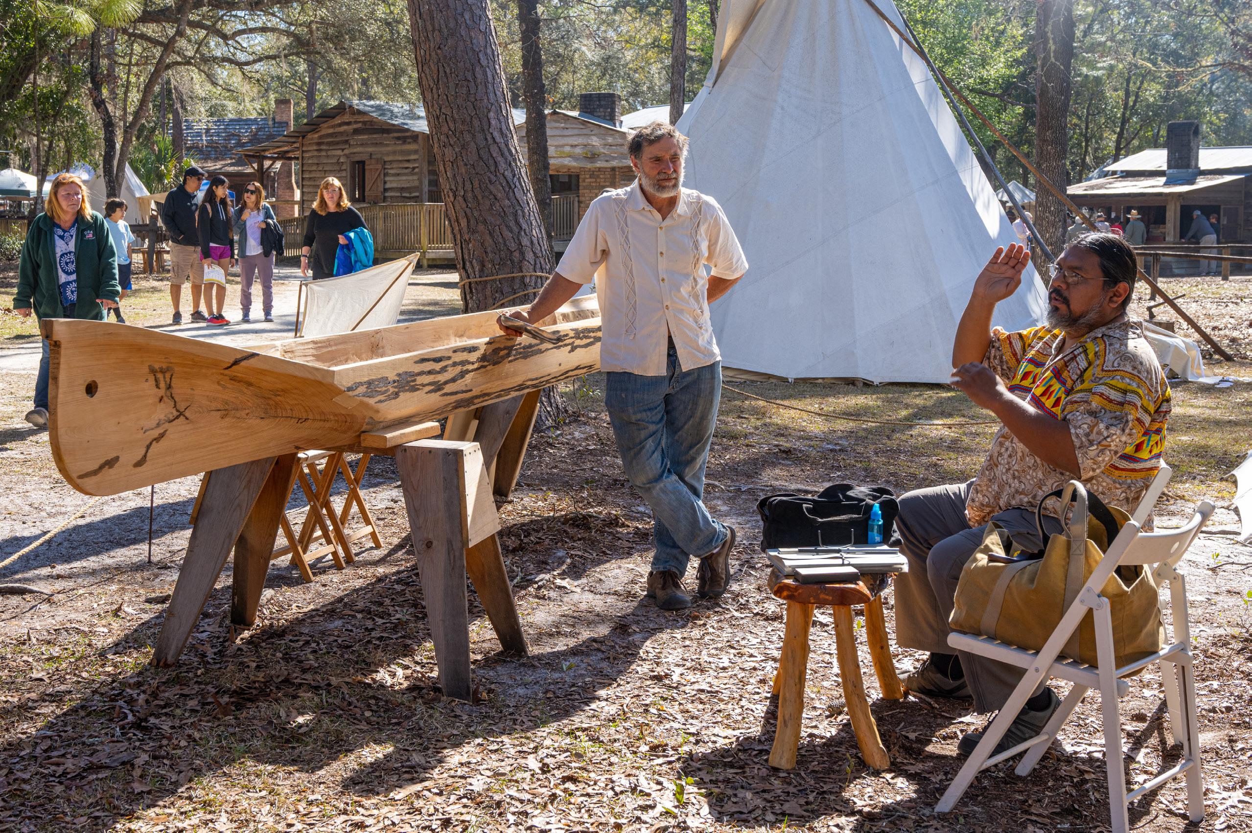 Seminole canoe carver Pedro Zepeda, right, will bring his handcrafted creations to Ocala, along with skilled flint knappers, for the annual Knap-In and Prehistoric Arts Festival.