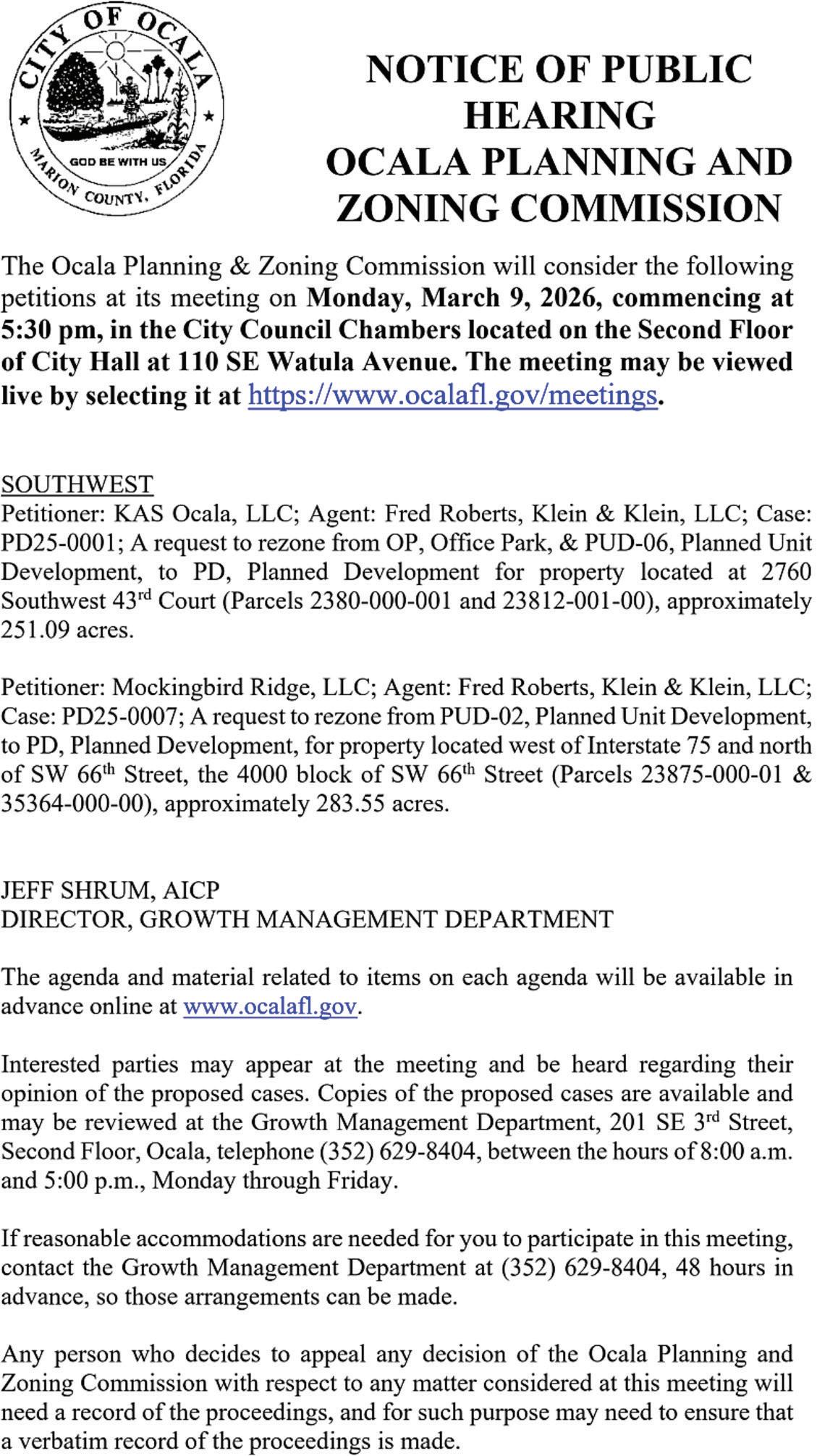 Ocala City Hall, 110 SE Watula Ave., Ocala 4pm The council meets each first and third Tuesday of the month. Agendas and minutes are available at ocala.legistar.com/calendar.aspx