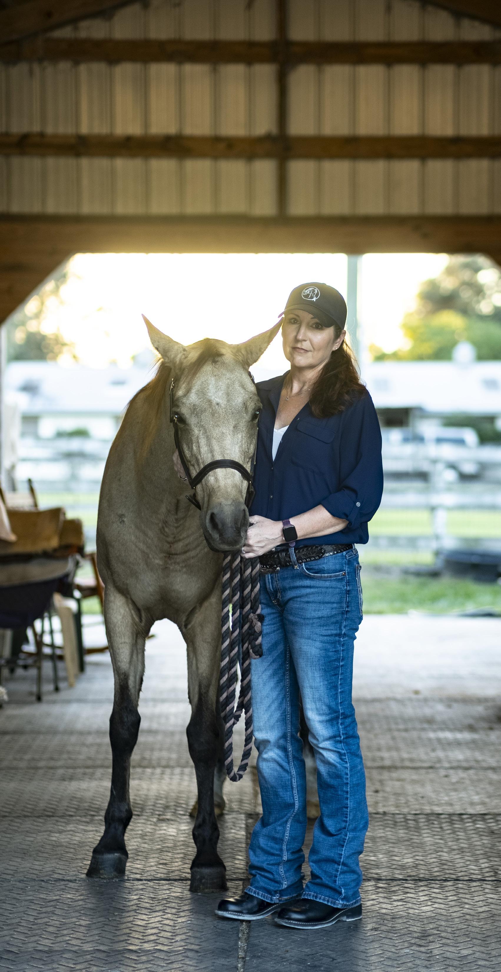 Shaun Ulrich spends a moment with her horse Spinner. [Photo by Tommy Cuevas]