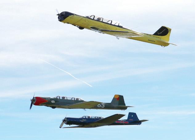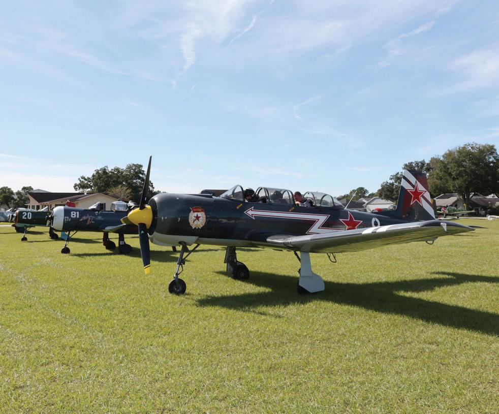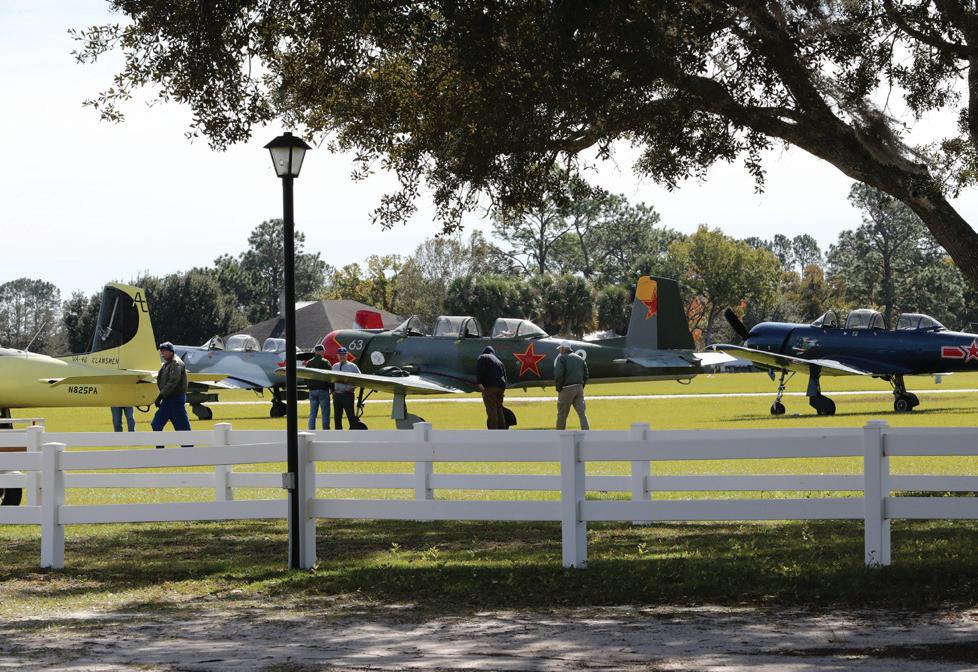 Val Diers, Hank Gibson and Kevin Creahan, left to right, all Navy veterans out of Jacksonville, pilot their Nanchang Chinese Air Force aircraft into Leeward Air Ranch to join The Humble Squadron for the flyover during the Veterans Day ceremony at the Ocala-Marion County Veterans Memorial Park.