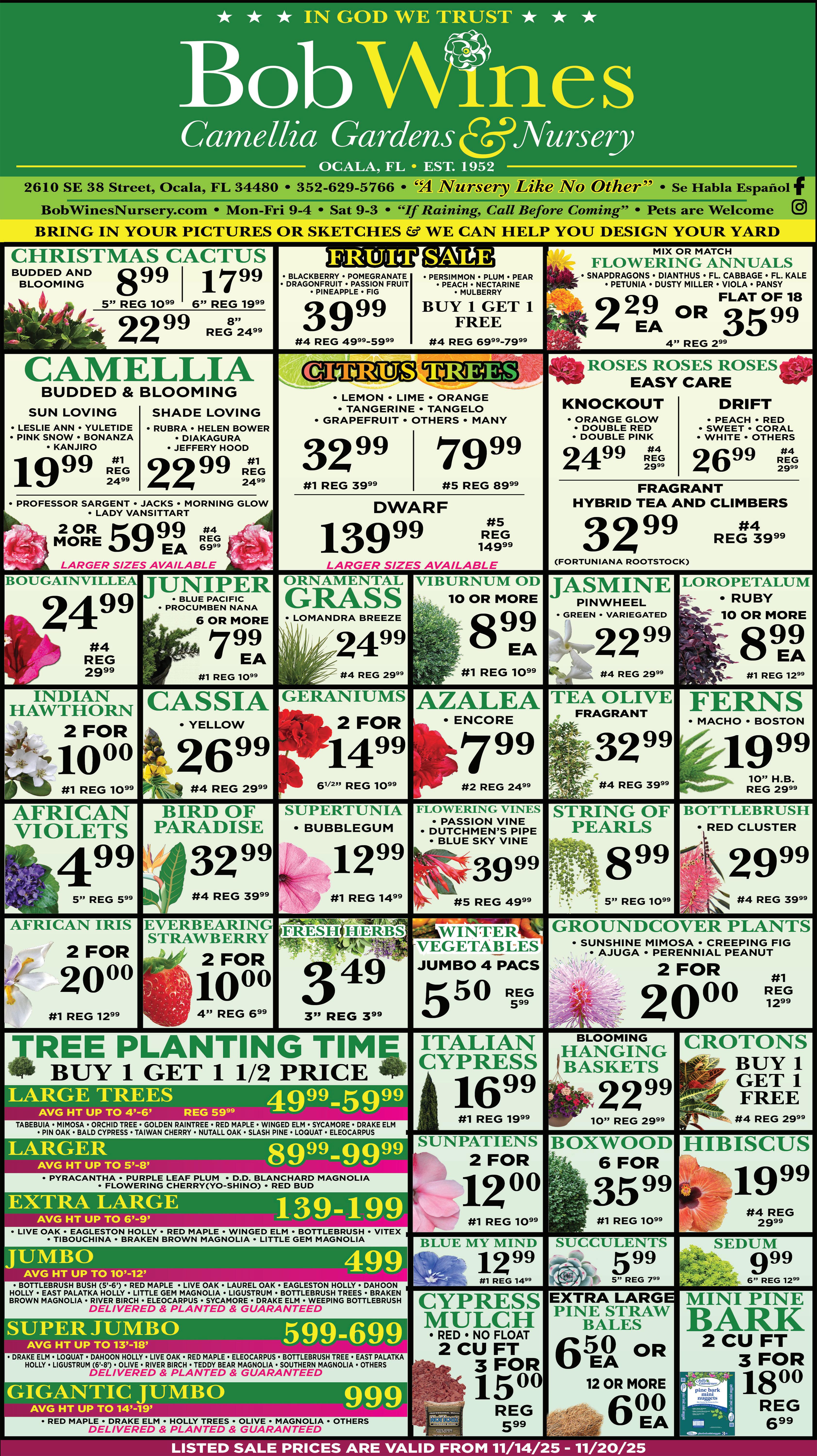 3-8pm Light Up Ocala is a longstanding community tradition to kick off the holidays that attracts thousands to downtown Ocala. The event includes vendors, lots of food options to choose from, live entertainment, an interactive kids zone and the Junior Sunshine holiday parade with a special appearance by Santa, all of which culminates in lighting up downtown Ocala. For more information, visit ocalafl.gov/lightup