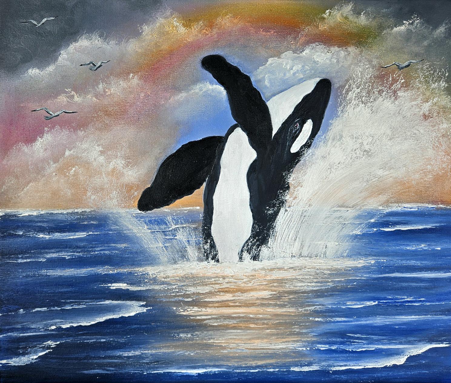 Georgina returns to OCCC this Spring with a killer idea: painting the orca image shown here. Participants will learn how to paint an oil painting using the wet-on-wet method. This method begins with painting the entire canvas with a light coat of oil paint for an easy blending technique. Learn how easy it is to blend and detail as you go, even if you currently do not have any drawing ability.