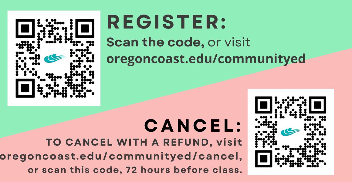 Inside this edition of ‘Catch the Wave,’ you’ll find fun workshops, classes, and events sure to enliven your Spring. To view the lineup online, visit us online, 24/7: oregoncoast.edu/communityed Alternatively, you can jump direct to registration by scanning the QR code: