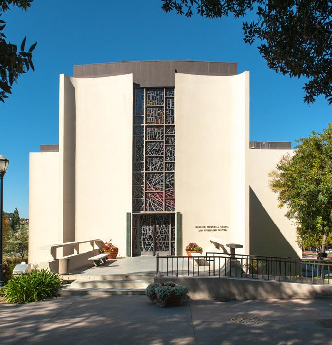 Walking back up the opposite side of the Quad, you’ll pass the Margaret Brown Herrick Memorial Chapel and Interfaith Center. It is available to the entire student body and community members and serves people of many faiths through worship, prayer, fellowship, counseling, weddings and presentations of religious art, music and drama. This building houses a 500seat chapel, a large meeting room, smaller seminar and reading rooms and offices for the College’s director of religious and spiritual life.