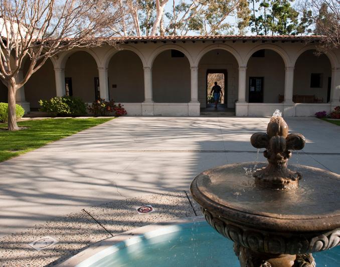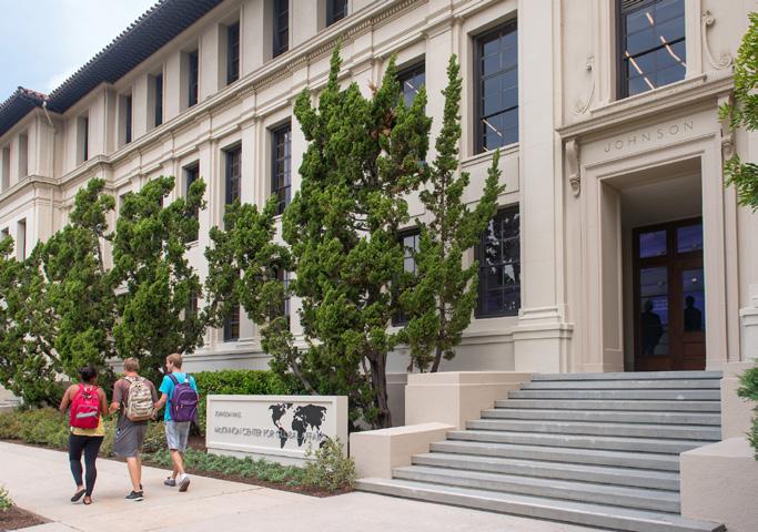 As you continue into the Quad, Johnson Hall will be on your left. Designed by Myron Hunt and opened in 1914 as one of the Eagle Rock campus’ three original buildings, Johnson houses the McKinnon Center for Global Affairs, the International Programs Office, Choi Auditorium, the Varelas Innovation Lab and the departments of Diplomacy & World Affairs, Politics, Spanish & French Studies, East Asian Languages & Cultures, and Comparative Studies in Literature & Culture, as well as classrooms and seminar rooms.