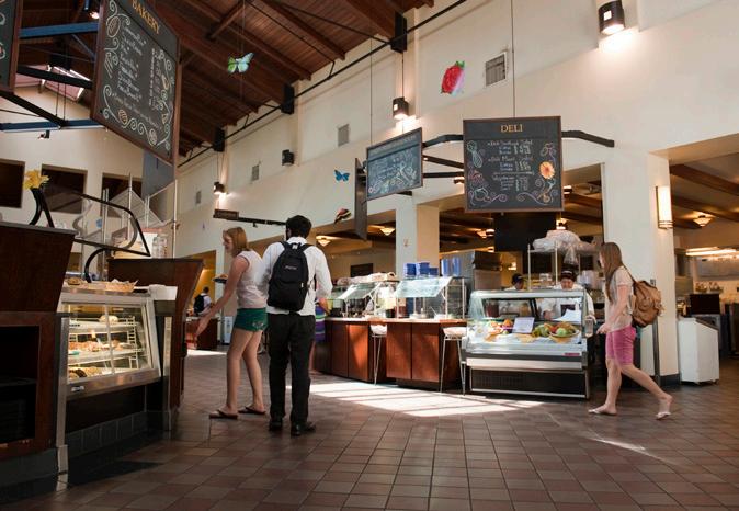 Located on the second floor of the Johnson Student Center, the Marketplace is the campus’ primary dining facility, with a variety of food stations and a rotating menu that has received national recognition. All students who live on campus have a meal plan, which works like a debit system. The meal plan is linked to the student’s campus ID and can be used at any of our four dining establishments: the Marketplace, the Green Bean Coffee Lounge, the Tiger Cooler (in Samuelson Pavilion) and the Coffee Cart in Berkus Hall. Students look forward to the themed meals and special holiday treats at the Marketplace. A favorite is the Thanksgiving Feast, held the Friday before students leave for Thanksgiving break. Campus Dining is always responding to student requests and tastes, whether it’s something as small as adding barbecue sauce to the condiments bar or something larger like the addition of a new make-yourown organic smoothie bar.