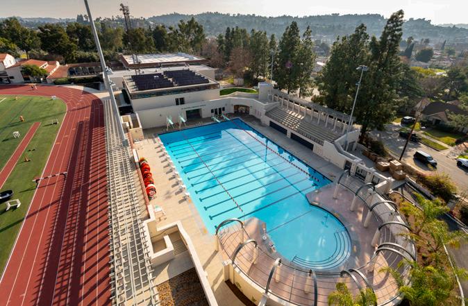 The newly opened Ranier De Mandel Aquatics Center features a 25-yard by 34-meter pool with a diving well for swimming, diving and water polo competition. Taking advantage of Southern California’s mild climate, the year-round outdoor pool provides 15 practice lanes and eight competitive lanes for swimmers; a 34-meter, all-deep-water venue for water polo; and a 13.3-foot-deep diving well with two 1-meter and two 3-meter diving boards for divers. All students have access to the attached recreational pool.