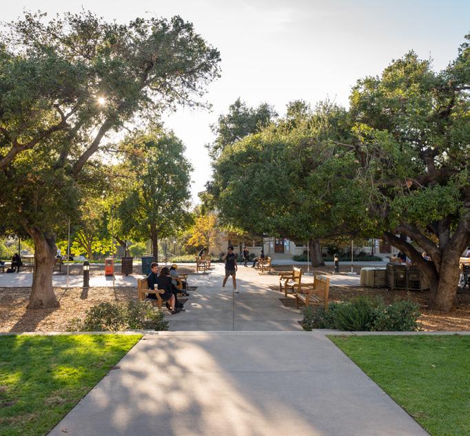The heart of architect Myron Hunt’s 1911 master plan for our 120-acre campus—the Academic Quad—is lined with the College’s original Beaux Arts buildings and the midcentury Herrick Chapel. The benches under the oaks are a favorite place to talk, study or go online (most of the campus is wireless).