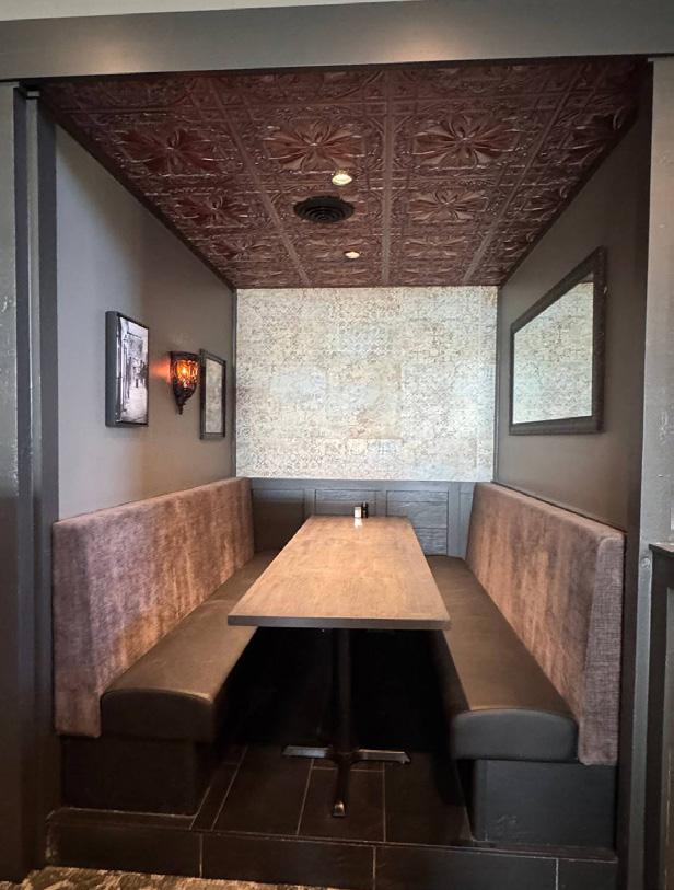 at home. Chris and his team took a former small room and transformed it into two eight-top private booths, complete with pull-across curtains for birthday parties and private gatherings—something he says is “tough to find” in Wichita.