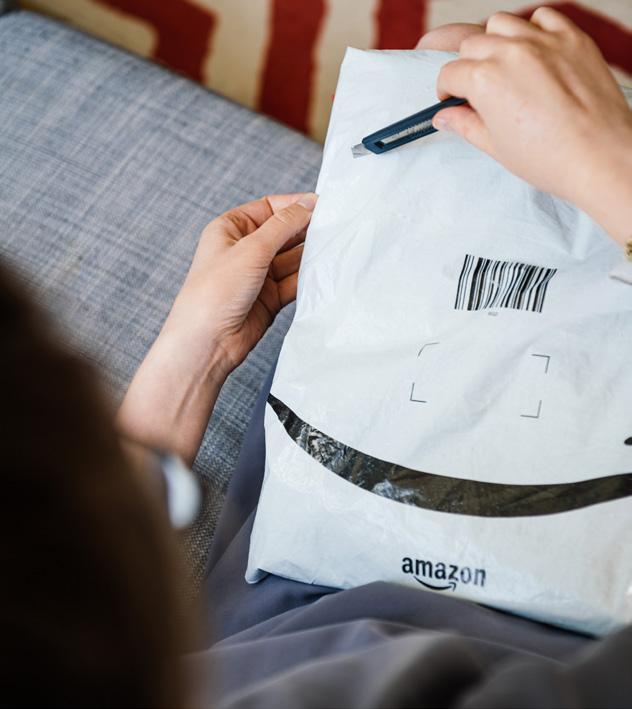 of plastic. It also pollutes the environment, which is evident to anyone who sees Amazon bubble wrap and mailers scattered across front yards, streets, and fields on trash-collection day.